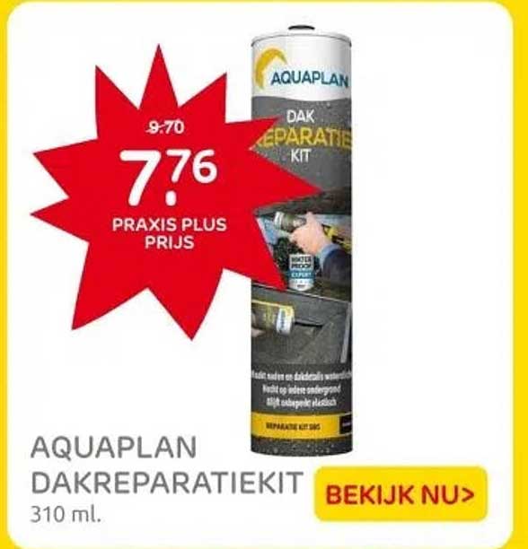 Bekijk nu de AQUAPLAN DAKREPARATIEKIT 310 ml. aanbieding in de Praxis folder. Deze aanbieding is geldig van 31-10-2025 tot en met 02-11-2025.