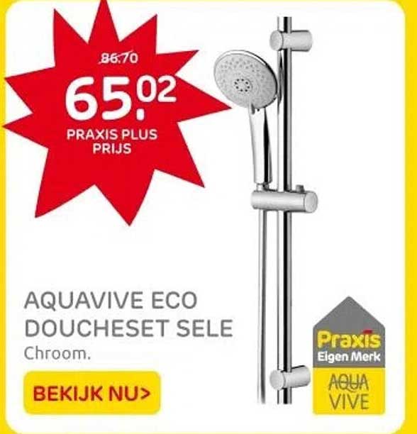 Bekijk nu de AQUAVIVE ECO DOUCHESET SELE aanbieding in de Praxis folder. Deze aanbieding is geldig van 27-10-2025 tot en met 02-11-2025.