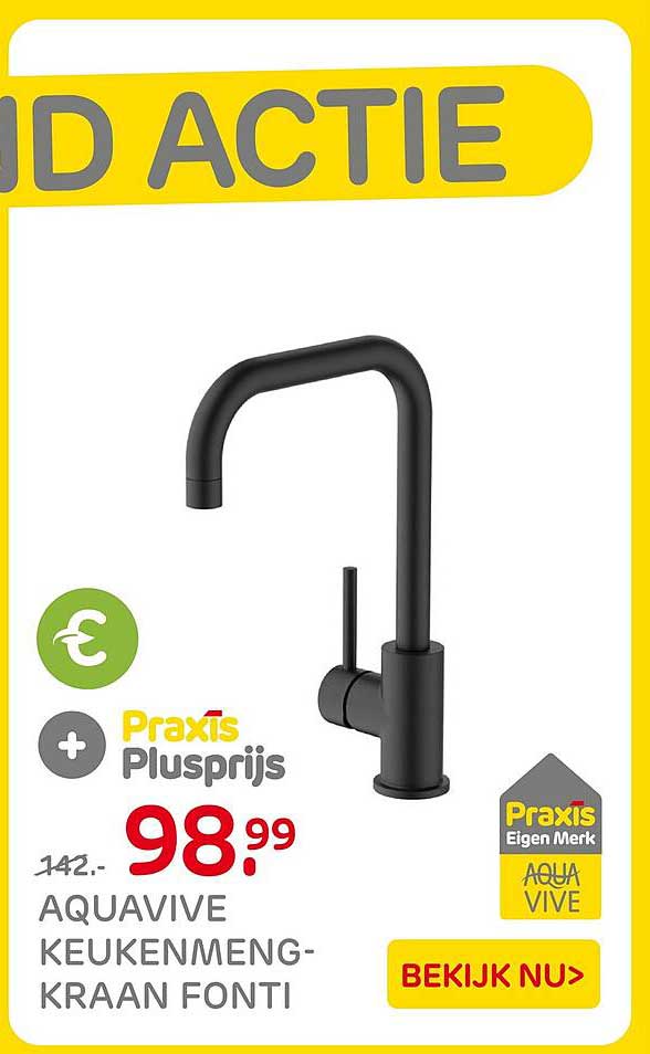 Ontdek de luxe van de AQUAVIVE KEUKENMENGKRAAN FONTI, nu in de aanbieding bij Praxis! Deze stijlvol ontworpen keukenkraan biedt niet alleen een prachtig ontwerp, maar ook functionaliteit voor elke moderne keuken. Of je nu een professionele chef-kok bent of gewoon graag kookt voor je gezin, deze kraan voegt een vleugje elegantie toe aan jouw keuken. De aanbieding is geldig van 2025-10-03 tot en met 2025-10-05, dus mis het niet!