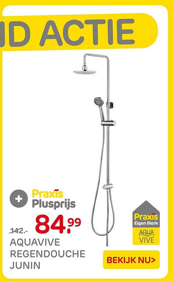 Ben je op zoek naar een nieuwe douche die zowel stijlvol als functioneel is? Dan is de AQUAVIVE REGENDOUCHE JUNIN van Praxis precies wat je nodig hebt! Met een korting van maar liefst 40% is dit het perfecte moment om jouw badkamer naar een hoger niveau te tillen. Deze prachtige regendouche biedt een luxe douche-ervaring die je elke ochtend energiek en verfrist laat voelen.