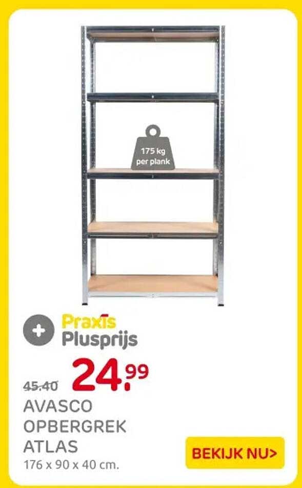 Bekijk nu de AVASCO OPBERGREK ATLAS aanbieding in de Praxis folder. Deze aanbieding is geldig van 10-10-2025 tot en met 12-10-2025.