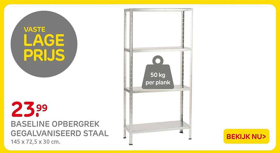 Ben je op zoek naar extra opbergruimte in huis? Dan is deze aanbieding bij Praxis echt iets voor jou! Het Baseline opbergrek van gegalvaniseerd staal is niet alleen sterk en duurzaam, maar ook zeer praktisch. Met een prijs van slechts €23,99 is dit rek perfect voor zowel thuis als in de garage of schuur. Het biedt een uitstekende oplossing voor het organiseren van al je spullen.