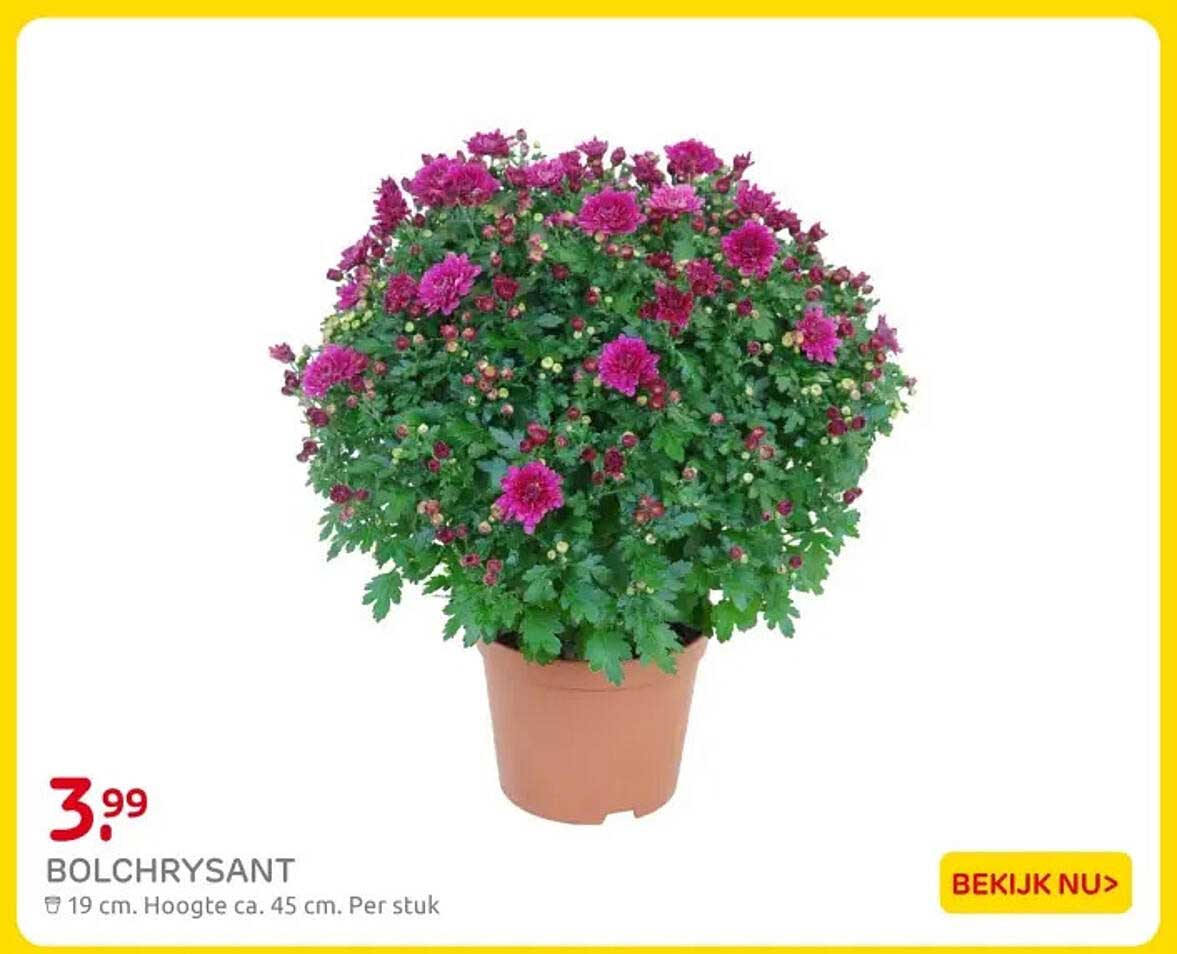 Deze prachtige Bolchrysant is nu verkrijgbaar voor een aantrekkelijke prijs van slechts €3,99! Of je nu je tuin wilt opfleuren of een vrolijk accent aan je interieur wilt toevoegen, deze bloeiende plant is de perfecte keuze. Neem snel een kijkje op deze pagina voor meer informatie over dit aanbod en mis deze kans niet!