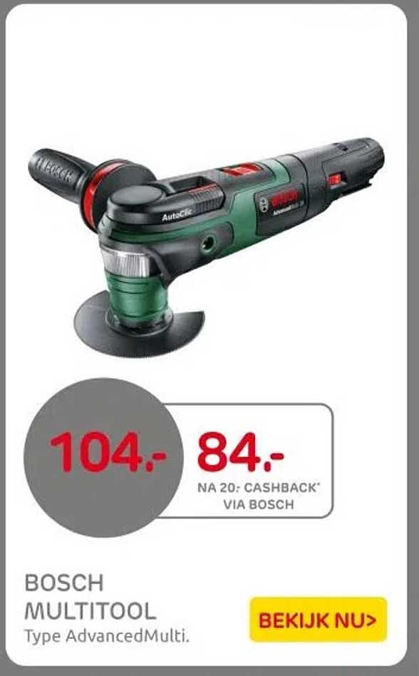 Voor slechts €84,- in plaats van €104,- krijg je een multitool van topkwaliteit. Dit is niet alleen een geweldige korting, maar met de cashback actie van Bosch profiteer je nog meer van je aankoop. Een slimme investering voor zowel professionals als hobbyisten!