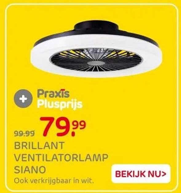 Bekijk nu de BRILLANT VENTILATORLAMP SIANO aanbieding in de Praxis folder. Deze aanbieding is geldig van 04-08-2025 tot en met 10-08-2025.