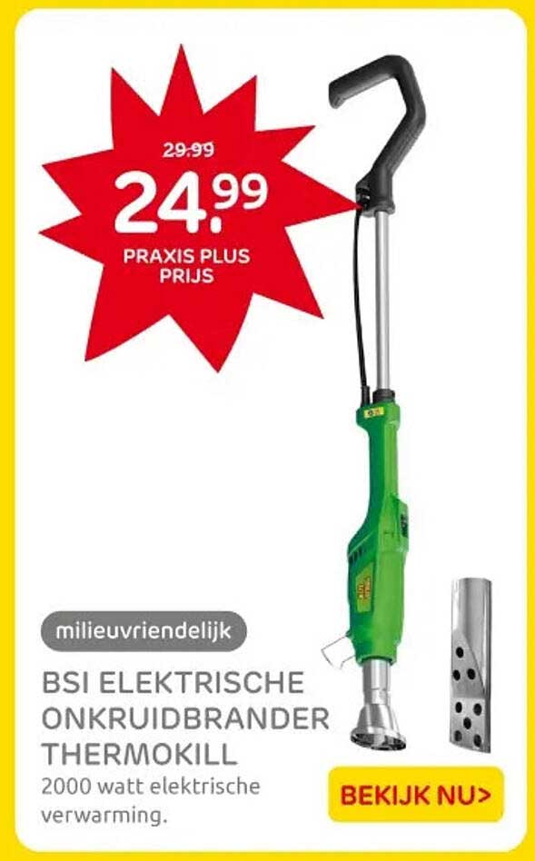 Bekijk nu de BSI Elektrische Onkruidbrander Thermokill aanbieding in de Praxis folder. Deze aanbieding is geldig van 10-06-2025 tot en met 15-06-2025.