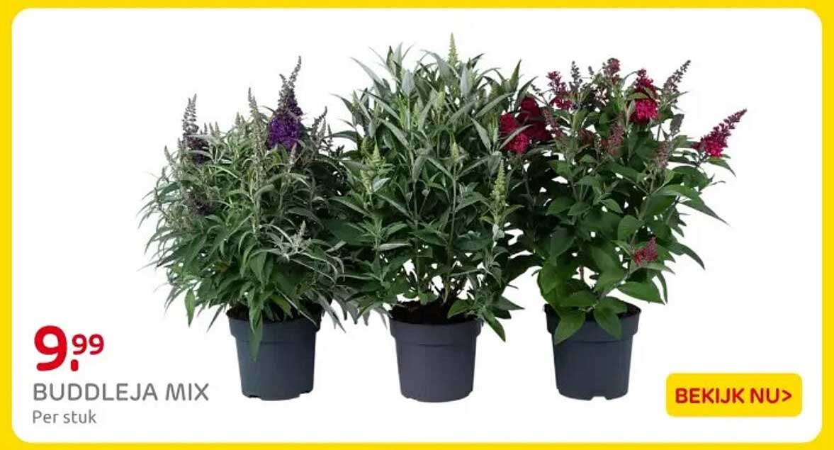 Voor slechts €9,99 per stuk is deze Buddleja Mix een fantastische aanbieding. Normaal gesproken betaal je meer voor kwalitatief goede tuinplanten, maar bij Praxis krijg je de kans om deze mooie mix tegen een aantrekkelijke prijs aan te schaffen. Dit is dé gelegenheid om je tuin op te fleuren zonder de bank te breken.