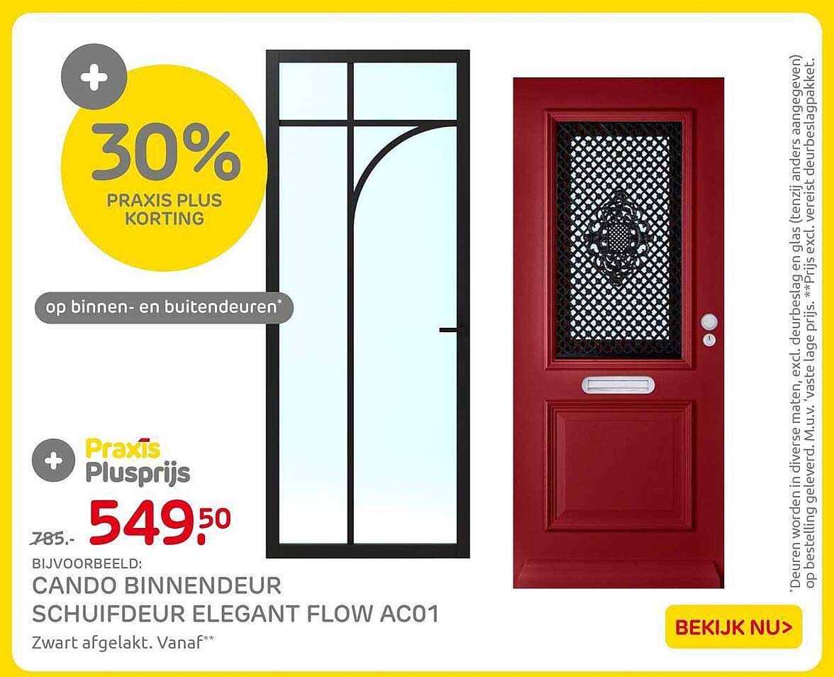 Ben jij op zoek naar een stijlvolle en praktische oplossing voor jouw interieur? Dan is de CANDO Binnendeur Schuifdeur Elegant Flow AC01 precies wat je nodig hebt. Met deze aanbieding profiteer je van maar liefst 30% korting, exclusief voor Praxis Plus leden. Deze deal is geldig van 26 september tot en met 28 september 2025, dus grijp je kans!