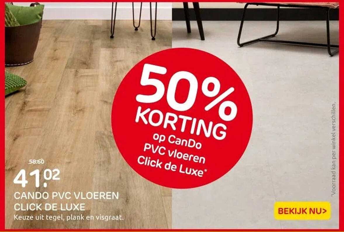 Heb je behoefte aan een nieuwe vloer die er niet alleen fantastisch uitziet, maar ook praktisch en duurzaam is? Dan is de CANDO PVC vloeren Click de Luxe een uitstekende keuze. Met deze aanbieding krijg je de kans om je interieur te verfraaien met vloeren van hoge kwaliteit, en dat met een korting van maar liefst 50%! Van 31 oktober tot en met 2 november 2025 kun je profiteren van deze geweldige deal.