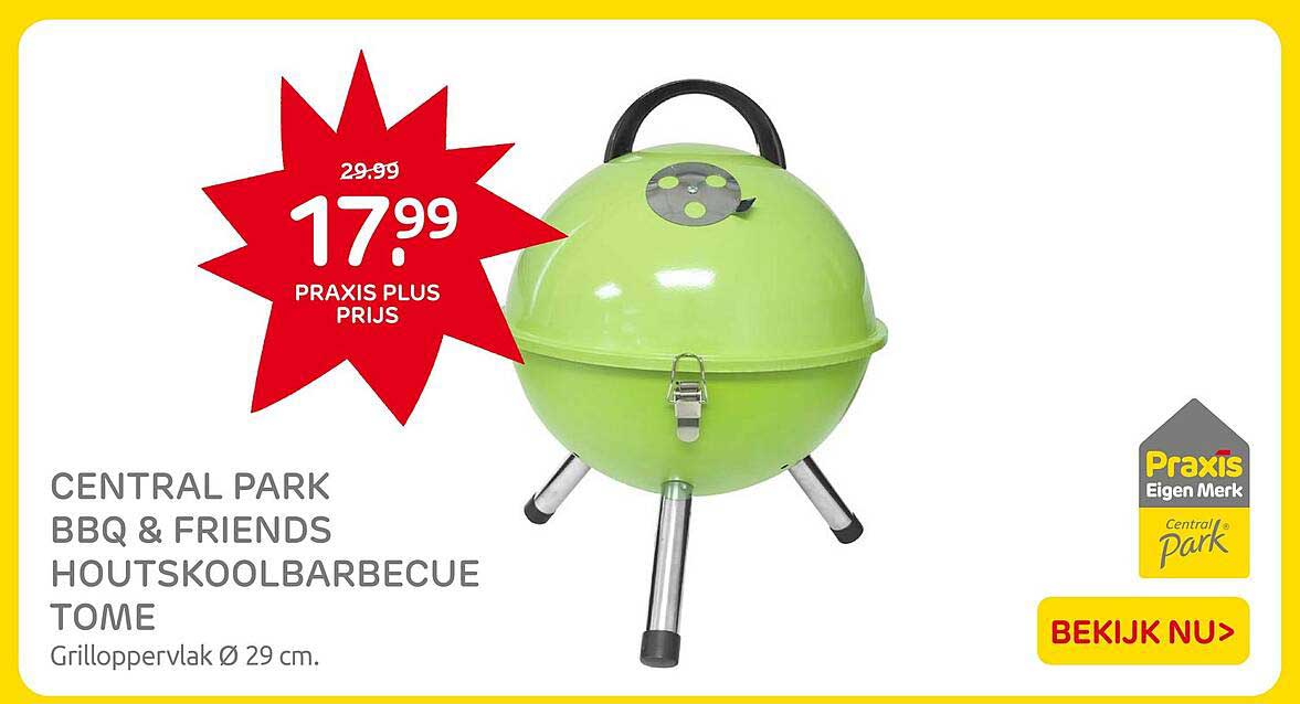 Bekijk nu de CENTRAL PARK BBQ & FRIENDS HOUTSKOOLBARBECUE TOME aanbieding in de Praxis folder. Deze aanbieding is geldig van 10-06-2025 tot en met 15-06-2025.