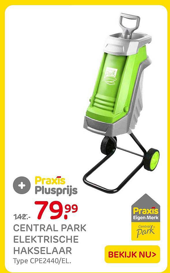 Bekijk nu de CENTRAL PARK ELEKTRISCHE HAKSELAAR Type CPE2440/EL. aanbieding in de Praxis folder. Deze aanbieding is geldig van 12-09-2025 tot en met 14-09-2025.