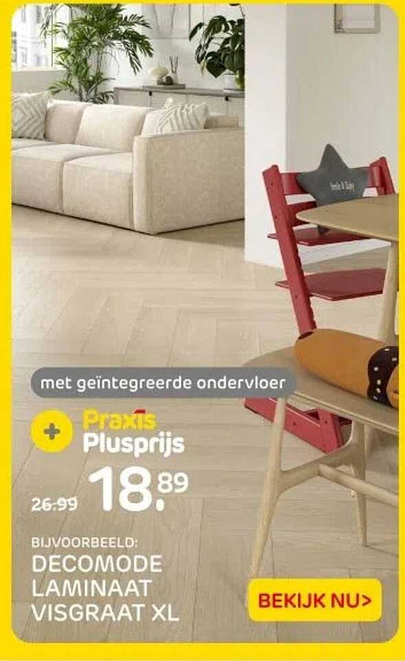 Ontdek de geweldige Decomode Laminaat Visgraat Xl aanbieding in de nieuwste Praxis folder. Naast deze aanbieding vind je nog veel meer aantrekkelijke kortingen. Je kunt de Decomode Laminaat Visgraat Xl eenvoudig online bestellen via de Praxis website of kopen in een winkel bij jou in de buurt.
