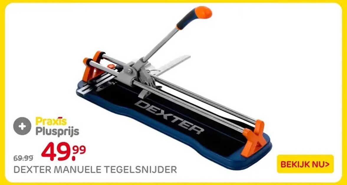 Bekijk nu de DEXTER MANUELE TEGELSNIJDER aanbieding in de Praxis folder. Deze aanbieding is geldig van 10-10-2025 tot en met 12-10-2025.