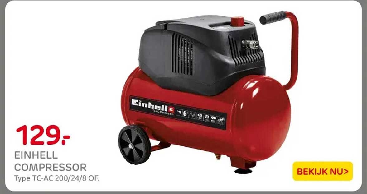 De Einhell Compressor is de ultieme partner voor al je luchtgereedschap en klussen. Of je nu een ervaren doe-het-zelver bent of gewoon wat klusjes om het huis moet aanpakken, deze compressor biedt de kracht en efficiëntie die je nodig hebt. Met een aantrekkelijke prijs van slechts €129,- is dit een tijdelijke kans die je niet wilt missen, geldig van 19 tot en met 21 september 2025.