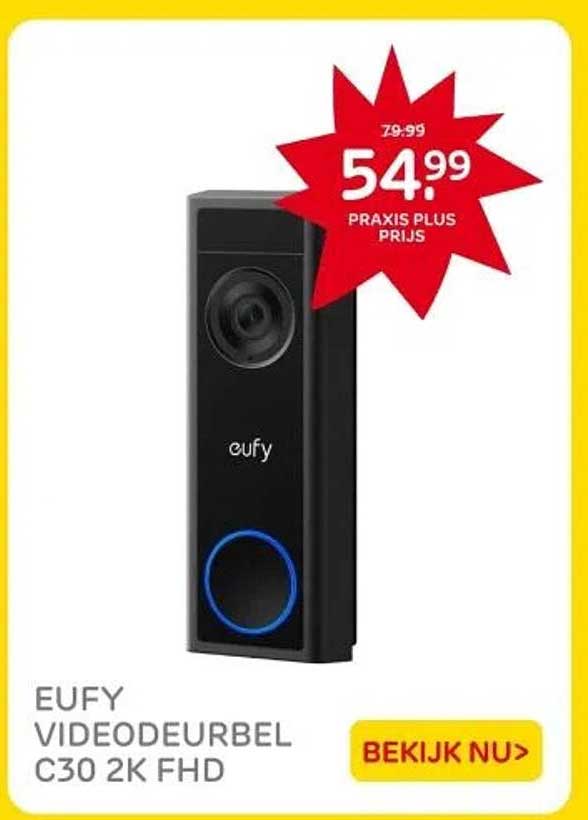 Bekijk nu de EUFY VIDEODEURBEL C30 2K FHD aanbieding in de Praxis folder. Deze aanbieding is geldig van 28-04-2025 tot en met 04-05-2025.