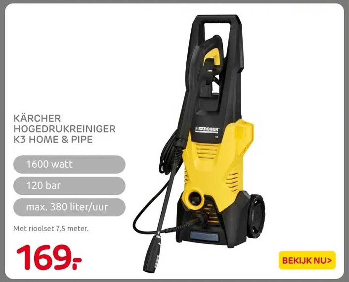 Bekijk nu de KÄRCHER HOGEDRUKREINIGER K3 HOME & PIPE aanbieding in de Praxis folder. Deze aanbieding is geldig van 07-04-2025 tot en met 13-04-2025.