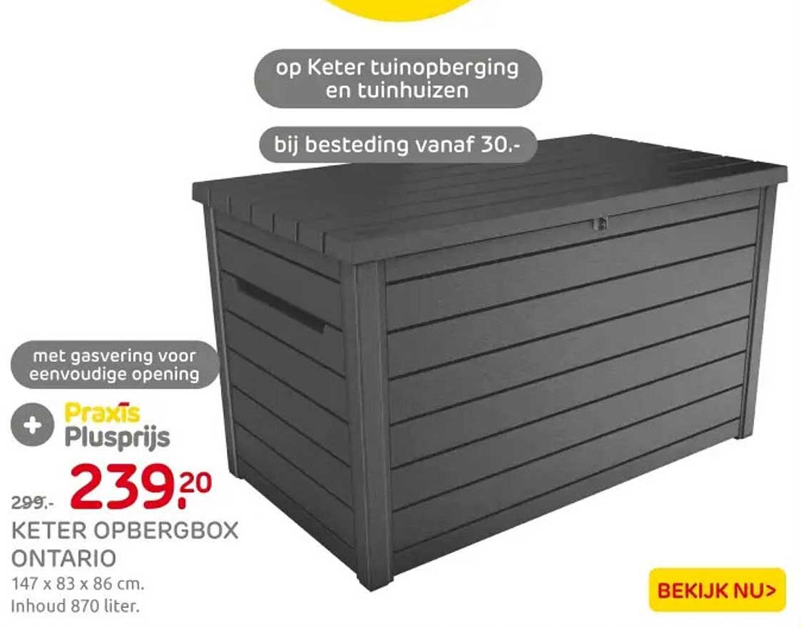 Bekijk nu de KETER OPBERGBOX ONTARIO aanbieding in de Praxis folder. Deze aanbieding is geldig van 05-09-2025 tot en met 07-09-2025.