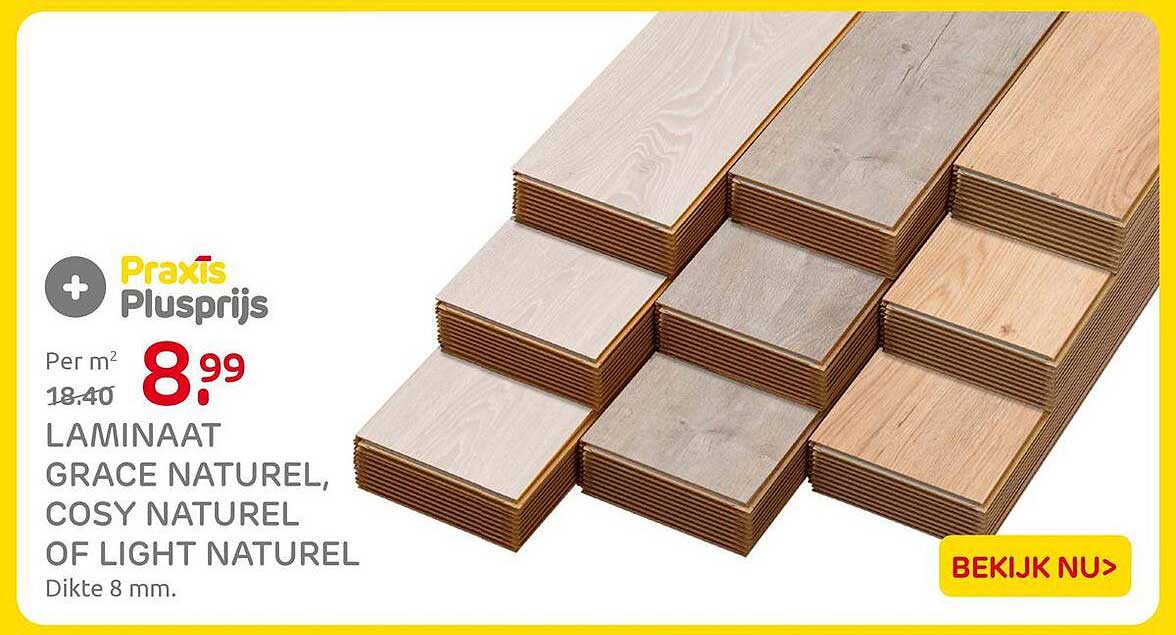 Bekijk nu de LAMINAAT GRACE NATUUR, COSY NATUUR OF LIGHT NATUUR - Dikte 8 mm aanbieding in de Praxis folder. Deze aanbieding is geldig van 26-09-2025 tot en met 28-09-2025.