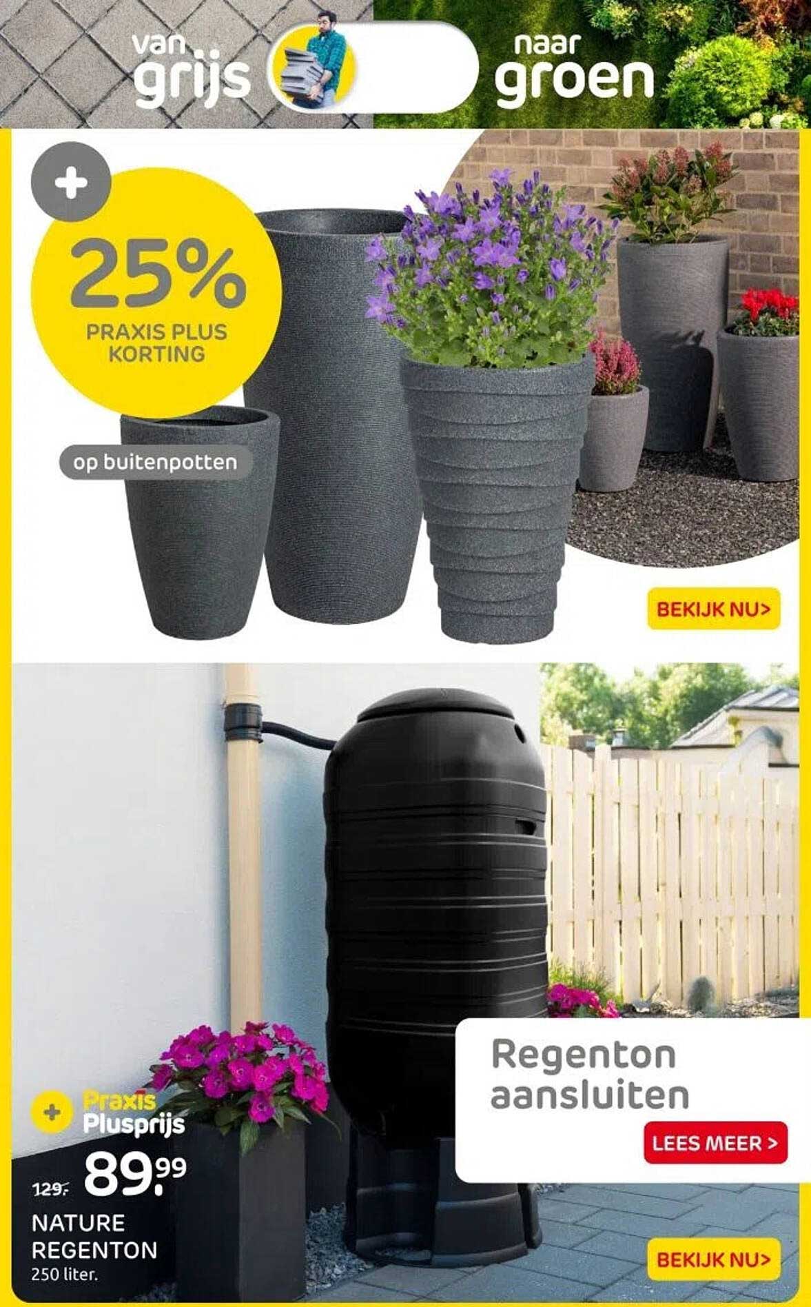 Bekijk nu de Nature Regenton 250 liter aanbieding in de Praxis folder. Deze aanbieding is geldig van 14-04-2025 tot en met 20-04-2025.