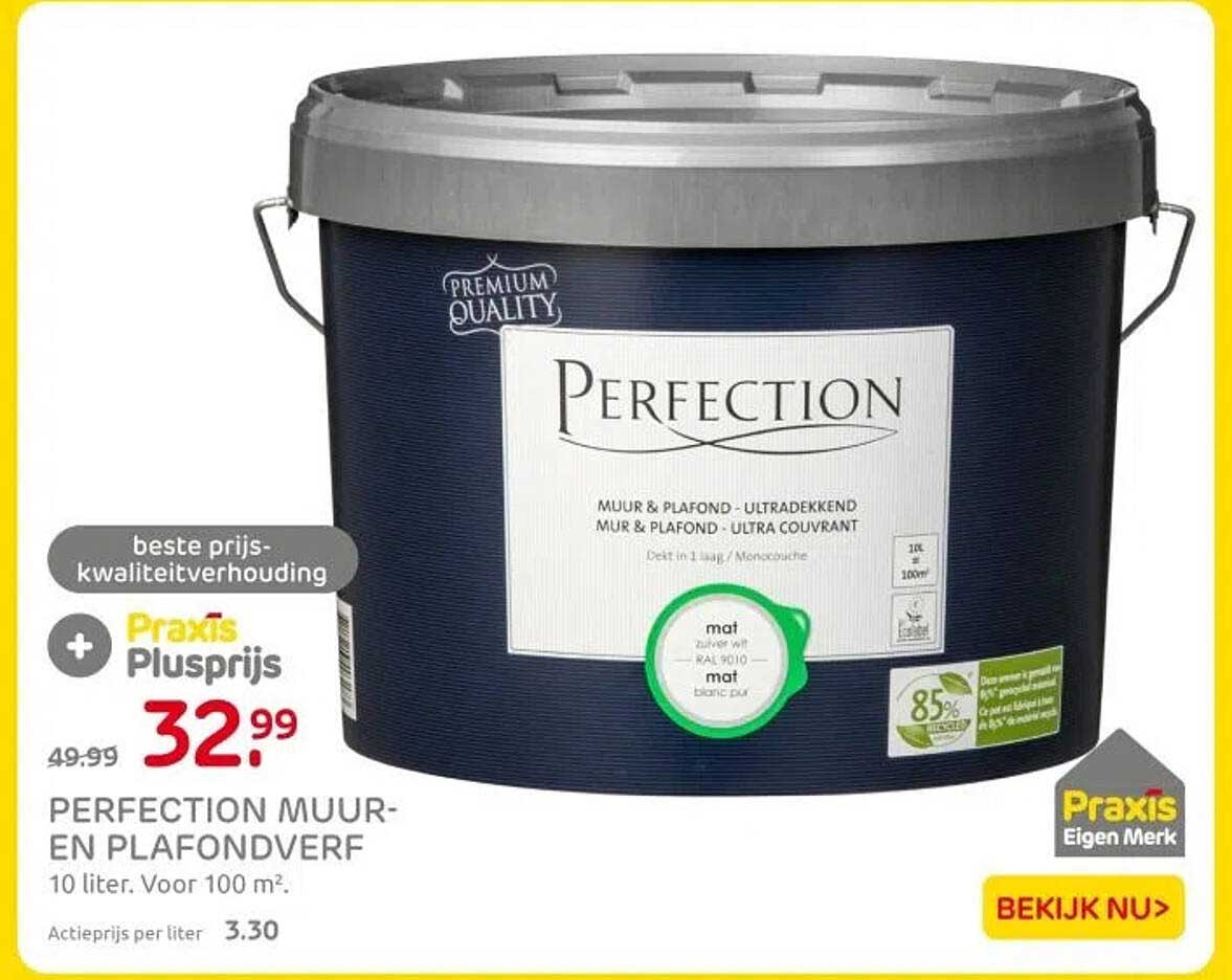 Ben je op zoek naar een ultieme oplossing voor de muren en plafonds in je huis? Dan is de Perfection Muur- en Plafondverf de perfecte keuze voor jou! Met zijn ultra dekkende eigenschappen en premium kwaliteit, brengt deze verf een nieuwe dimensie aan je interieur. Deze aanbieding stelt je in staat om je leefruimtes te verfrissen met een hoogwaardige verf die uitstekend dekt en lang meegaat.