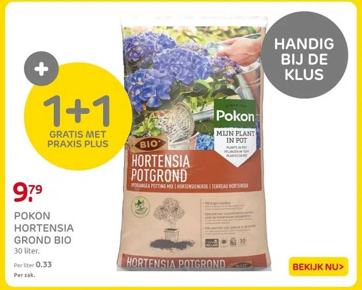 Ben je op zoek naar de perfecte potgrond voor jouw hortensia's? Dan is deze aanbieding echt iets voor jou! De Pokon Hortensia Grond Bio, die je nu kunt kopen bij Praxis, biedt alles wat je nodig hebt om je planten te laten schitteren. Met de actie '1+1 gratis' is dit een unieke kans om je tuin of balkon te verfraaien zonder je budget te overschrijden. Deze aanbieding is geldig van 14 april tot en met 20 april 2025, dus wees er snel bij!