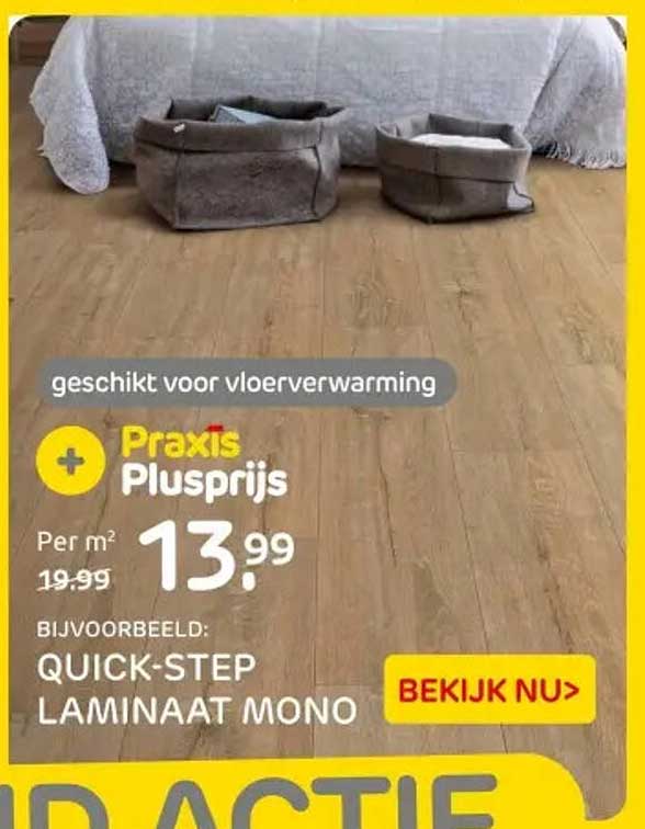 Bekijk nu de QUICK-STEP LAMINAAT MONO aanbieding in de Praxis folder. Deze aanbieding is geldig van 10-10-2025 tot en met 12-10-2025.