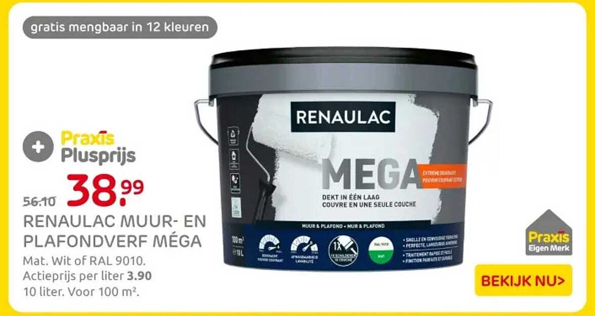 Bekijk nu de RENAULAC MUUR- EN PLAFONDVERF MÉGA aanbieding in de Praxis folder. Deze aanbieding is geldig van 10-10-2025 tot en met 12-10-2025.
