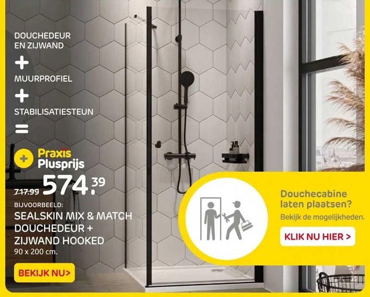 Ben je op zoek naar een stijlvolle en functionele oplossing voor je badkamer? Dan is deze aanbieding van de Praxis-folder precies wat je nodig hebt! Met de SEALSKIN MIX & MATCH douchdeur en zijwand kun je jouw doucheplek gemakkelijk transformeren. Deze set biedt niet alleen een mooie uitstraling, maar ook kwaliteit en gebruiksgemak. Perfect voor een vernieuwde badkamer!