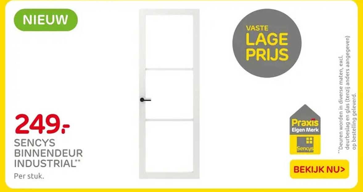Bekijk nu de SENCYS BINNENDEUR INDUSTRIAL aanbieding in de Praxis folder. Deze aanbieding is geldig van 05-09-2025 tot en met 07-09-2025.