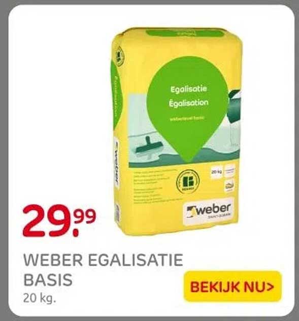 Ben je van plan om een vloer te egaliseren en op zoek naar een betrouwbare oplossing? Dan is de WEVER EGALISATIE BASIS een uitstekende keuze voor jou! Deze hoogwaardige egalisatie is speciaal ontwikkeld om een gladde, vlakke ondergrond te creëren voor diverse vloerafwerkingen. Met deze aanbieding, geldig van 2025-04-07 tot en met 2025-04-13, kun je profiteren van een aantrekkelijke prijs voor een product dat in elk huishouden van pas kan komen.