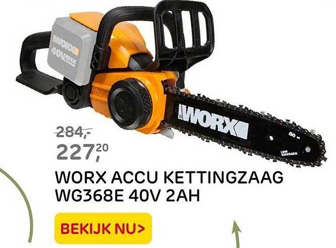 Ontdek de geweldige Worx Accu Kettingzaag Wg368E 40V 2Ah aanbieding in de nieuwste Praxis folder. Naast deze aanbieding vind je nog veel meer aantrekkelijke kortingen. Je kunt de Worx Accu Kettingzaag Wg368E 40V 2Ah eenvoudig online bestellen via de Praxis website of kopen in een winkel bij jou in de buurt.