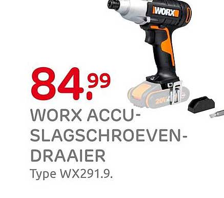 Bekijk nu de WORX ACCU-SLAGSCHROEVENDRAAIER Type WX291.9 aanbieding in de Praxis folder. Deze aanbieding is geldig van 03-10-2025 tot en met 05-10-2025.