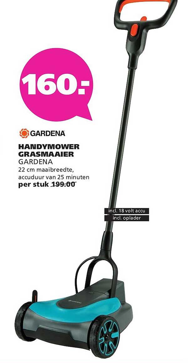 Deze week heb je een unieke kans om de Handymower Grasmaaier van Gardena in huis te halen! Met een maai breedte van 22 cm en een batterijduur van 25 minuten, is dit het ideale hulpmiddel voor ieder die zijn gras mooi en strak wil houden. Perfect voor kleine tuinen of zelfs balkons, hij maakt het onderhoud van je groene ruimte eenvoudig en efficiënt.