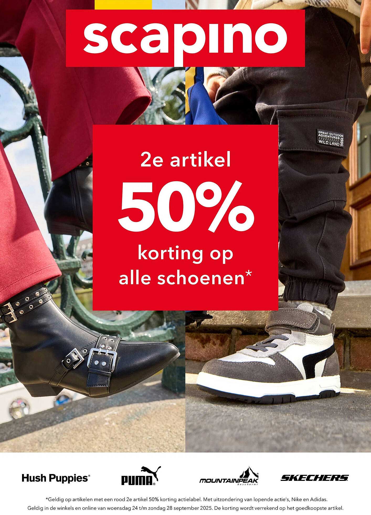 Bekijk nu de 2e artikel 50% korting op alle schoenen* aanbieding in de Scapino folder. Deze aanbieding is geldig van 25-09-2025 tot en met 28-09-2025.