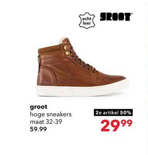 Ontdek de perfecte combinatie van stijl en comfort met de 'groot' hoge sneakers, verkrijgbaar in maat 32 tot 39. Deze sneakers zijn niet alleen modieus, maar bieden ook de ondersteuning die je nodig hebt tijdens al je dagelijkse bezigheden. Of je nu een casual dagje uit hebt of een sportieve activiteit plant, deze sneakers maken je outfit compleet. Met een geweldige aanbieding zoals deze, is het de perfecte kans om je garderobe een upgrade te geven.