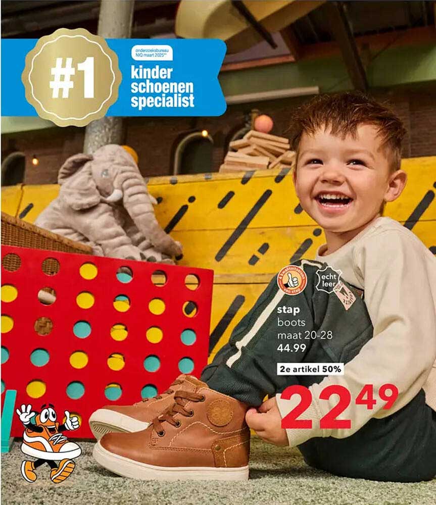 Normaal gesproken kosten deze stap boots €44,99, maar nu kun je ze krijgen voor slechts €22,49! Dit is een fantastische kans om je kind mooi schoeisel aan te schaffen zonder je budget te overschrijden. En vergeet niet dat je bij aankoop van de tweede paar zelfs 50% korting krijgt. Dat maakt het nog aantrekkelijker om in te slaan!