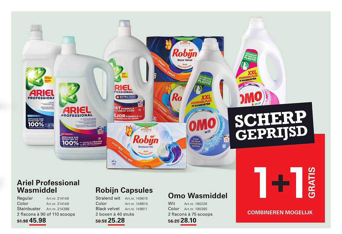 Bekijk nu de Ariel Professional Wasmiddel aanbieding in de Sligro folder. Deze aanbieding is geldig van 20-11-2025 tot en met 08-12-2025.
