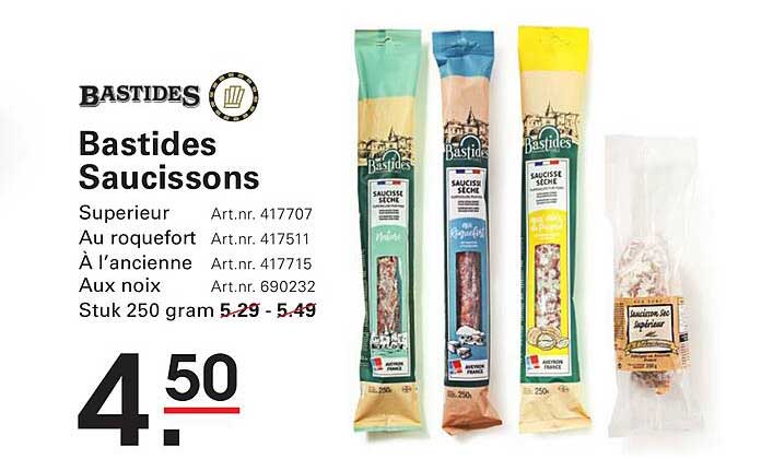 Bekijk nu de Bastides Saucissons 250 gram aanbieding in de Sligro folder. Deze aanbieding is geldig van 09-10-2025 tot en met 27-10-2025.