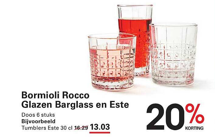 Met een originele prijs van €16,29, nu voor slechts €13,03, bespaar je 20%! Dit is een buitenkans waarvoor je niet wilt wachten. De korting maakt deze glazen nog verleidelijker, want je krijgt topkwaliteit voor een scherpe prijs.