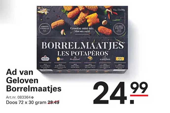 De aanbieding is bijzonder aantrekkelijk, gezien de prijs van slechts €24,99. Dit is een flinke besparing ten opzichte van de normale prijs van €28,49! Hierdoor kun je onbezorgd genieten van alle lekkernijen en je gasten verwennen zonder hard in de buidel te moeten tasten.