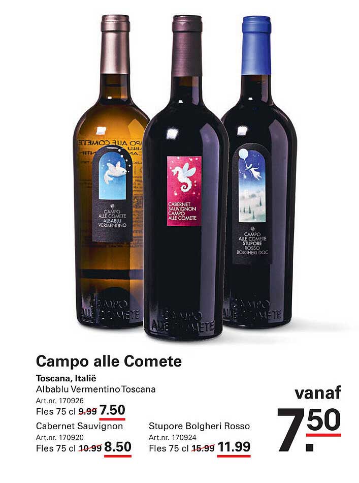 Ben je op zoek naar een heerlijke Italiaanse wijn? Dan is Campo alle Comete iets voor jou! Deze wijnen komen uit de prachtige regio Toscane en bieden uitzonderlijke smaken die perfect zijn voor elke gelegenheid. Of je nu een diner organiseert of gewoon wilt genieten van een goed glas wijn na een lange dag, deze aanbiedingen zijn een uitkomst.