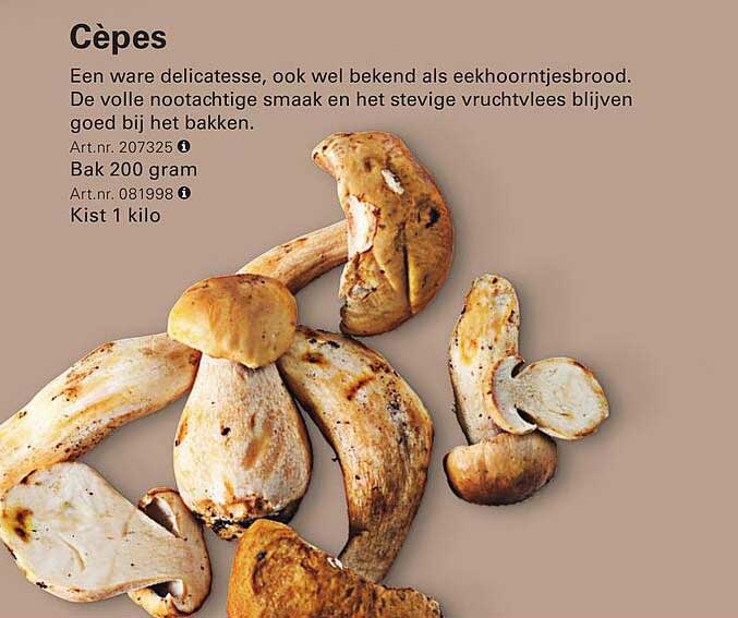 Bekijk nu de Cèpes, een ware delicatesse, ook wel bekend als eekhoorntjesbrood. aanbieding in de Sligro folder. Deze aanbieding is geldig van 09-10-2025 tot en met 27-10-2025.