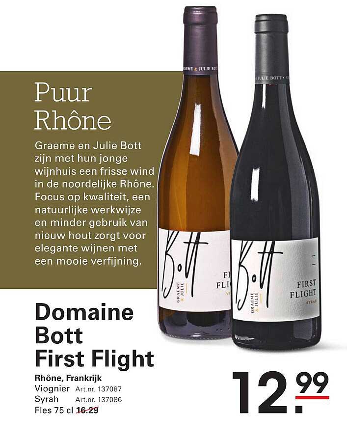 Op zoek naar een verfijnde wijn die de smaken van de Rhône perfect tot leven brengt? Kijk dan hier! Deze Domaine Bott First Flight is een uitstekende keuze voor de wijnliefhebber die kwaliteit en smaak waardeert. Deze aanbieding, geldig van 9 oktober tot en met 27 oktober 2025, geeft je de kans om te genieten van deze bijzondere wijnen voor een aantrekkelijke prijs.