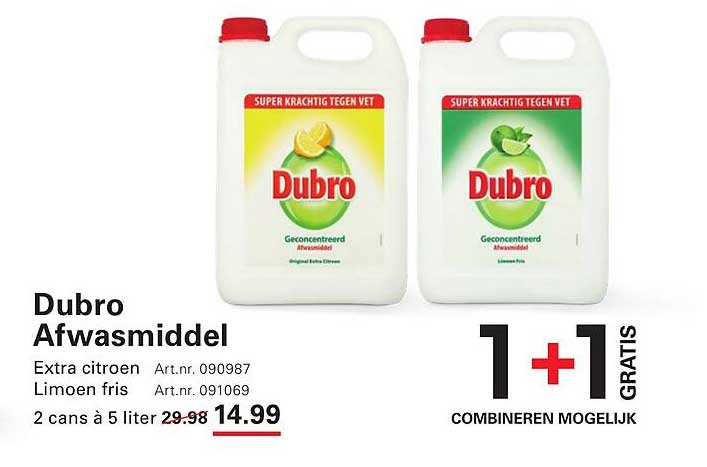 Bekijk nu de Dubro Afwasmiddel aanbieding in de Sligro folder. Deze aanbieding is geldig van 15-05-2025 tot en met 02-06-2025.