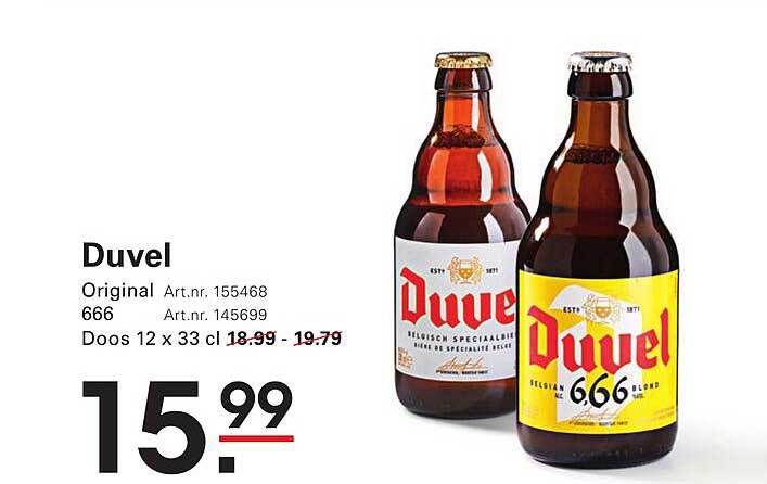 Bent u een liefhebber van speciaalbieren? Op deze pagina kunt u profiteren van een geweldige aanbieding voor Duvel! Dit iconische Belgische bier staat bekend om zijn rijke smaak en stijlvolle presentatie. Of u het nu geniet na een lange werkdag of tijdens een gezellige bijeenkomst met vrienden, Duvel is altijd een uitstekende keuze.