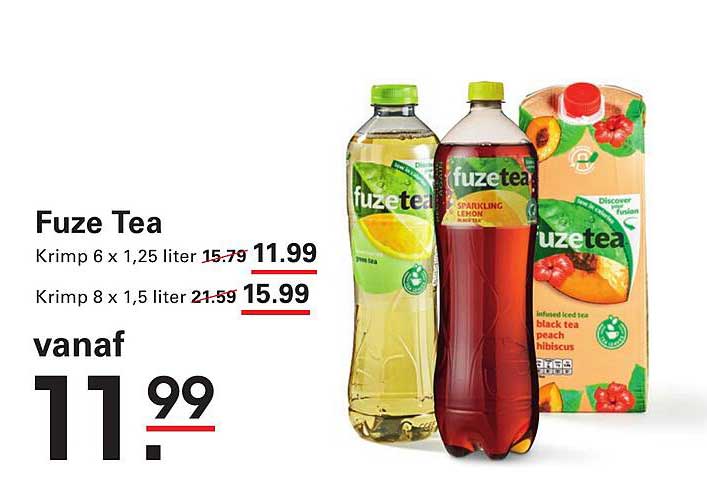 Met de aanbieding van Fuze Tea met een prijs vanaf €11,99 voor de 6-packs, bespaar je flink in vergelijking met de reguliere prijs van €15,79. Ook de grotere verpakkingen zijn aantrekkelijk geprijsd, met een korting op de normale prijs van €21,59. Dit is het ideale moment om je voorraad te vullen en te profiteren van deze tijdelijke prijsverlaging. Waarom wachten? Maak gebruik van deze unieke gelegenheid!
