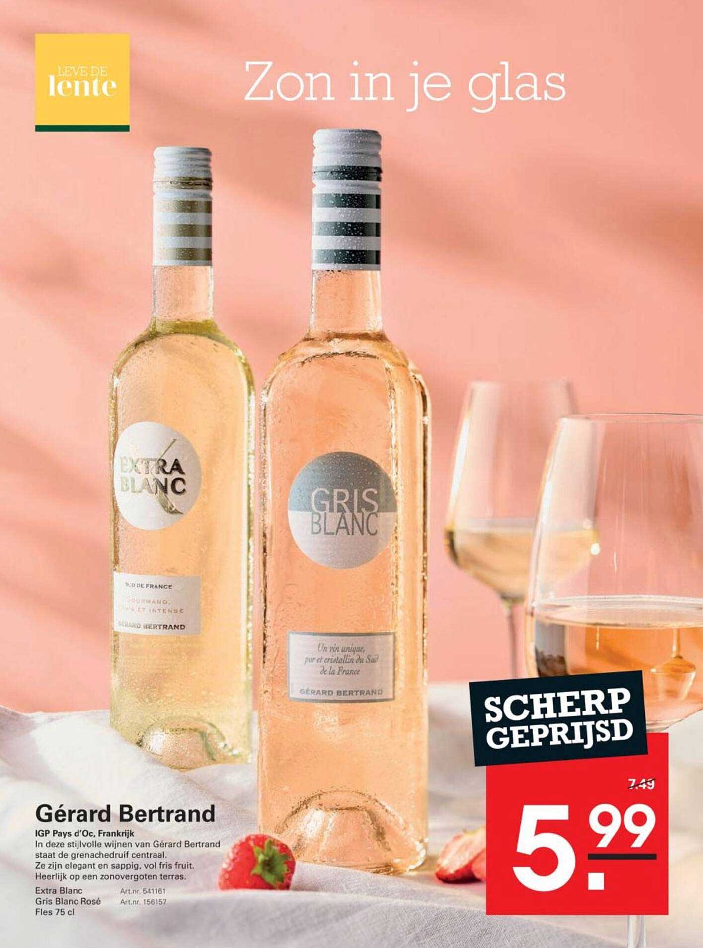 Ontdek de heerlijke Gérard Bertrand wijnen, perfect voor lente-avonden en zomerfeestjes. Met de slogan 'Zon in je glas' beloven deze wijnen een frisse en fruitige ervaring. Of je nu een favoriet voor bij het diner zoekt of een lichte wijn voor een gezellige borrel, deze aanbieding biedt je de ideale gelegenheid om te genieten van geweldige smaak.