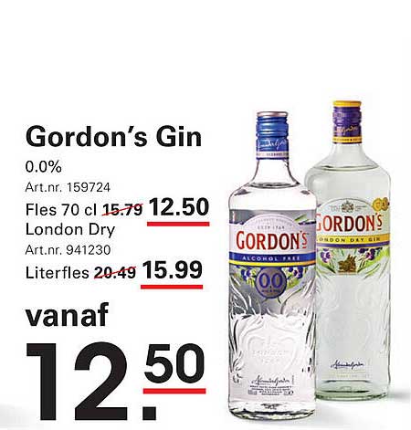Normaal gesproken betaal je voor een fles Gordon’s Gin al snel €15,79. Maar op deze pagina vind je deze geweldige aanbieding voor slechts €12,50. Dat is een flinke korting en een geweldige kans om deze smaakvolle gin uit te proberen. Bovendien is het een uitstekende optie om te delen met vrienden!