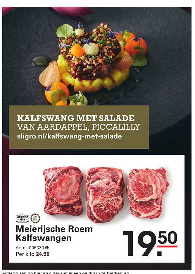 Ben je benieuwd naar meer van dit soort aanbiedingen? Bekijk dan zeker de Sligro-folder. Hier vind je niet alleen deze smakelijke kalfswang, maar ook andere heerlijke producten en aanbiedingen die je niet wilt missen. Maak je maaltijden bijzonder met de juiste ingrediënten van Sligro!