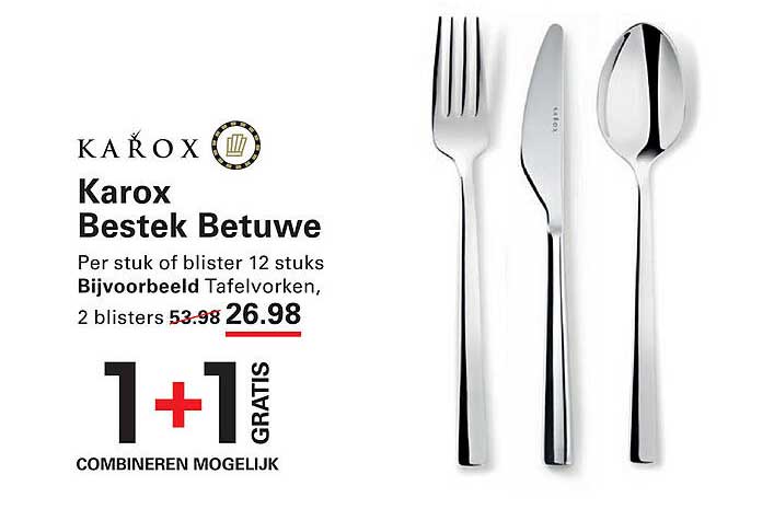 Normaal gesproken zou je voor twee blisters van dit bestek 53,98 euro betalen, maar met deze aanbieding betaal je slechts 26,98 euro! Dit betekent dat je enorm kunt besparen. Bovendien kun je profiteren van de 1+1 gratis actie, wat deze deal zelfs nog aantrekkelijker maakt. Maak gebruik van deze kans om je bestekcollectie uit te breiden zonder je budget te overschrijden.